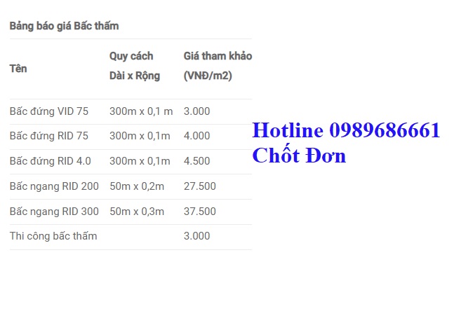 Bấc thấm được phân chia thành hai loại bấc đứng và bấc ngang. Do đó, giá bán cũng có sự khác biệt. Nếu bạn muốn nắm bắt chi tiết về giá bấc thấm có thể tham khảo chi tiết dưới đây: